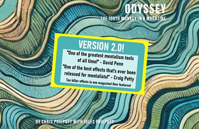 Designed by Jules Philpott (a professional graphic designer), Odyssey 2.0 looks and feels exactly like something you’d pick up in an airport lounge or a premium hotel lobby – but in your hands it becomes a complete close-up or stage weapon.